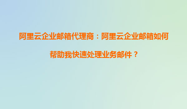 阿里云企業(yè)郵箱代理商:阿里云企業(yè)郵箱如何幫助我快速處理業(yè)務(wù)郵件?