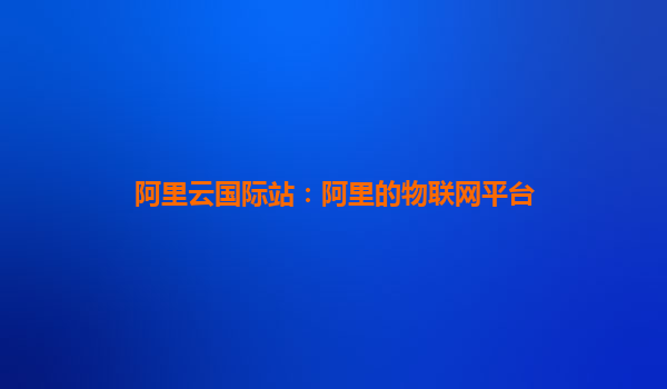 阿里云國際站:阿里的物聯(lián)網(wǎng)平臺優(yōu)勢解析