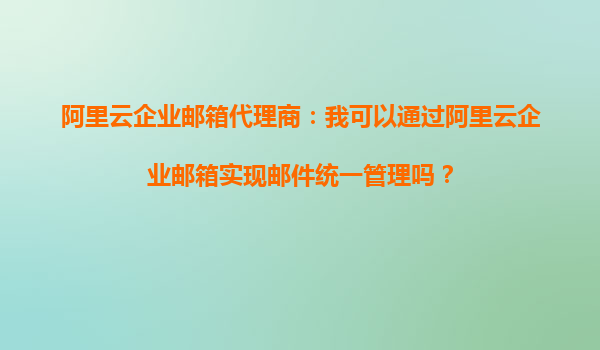 阿里云企業(yè)郵箱代理商:如何通過阿里云企業(yè)郵箱實(shí)現(xiàn)郵件統(tǒng)一管理?