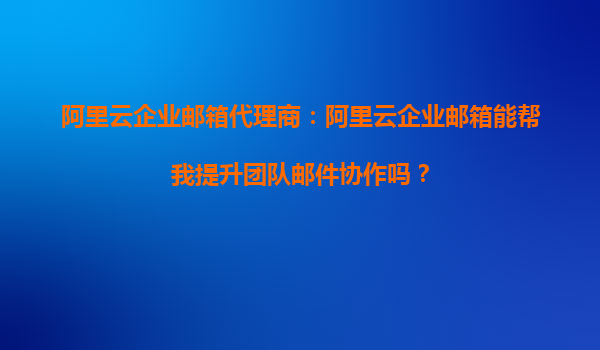阿里云企業(yè)郵箱代理商:阿里云企業(yè)郵箱能幫我提升團隊郵件協(xié)作嗎?