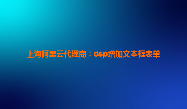 上海阿里云代理商:ASP增加文本框表單的技術實現(xiàn)與云端優(yōu)勢