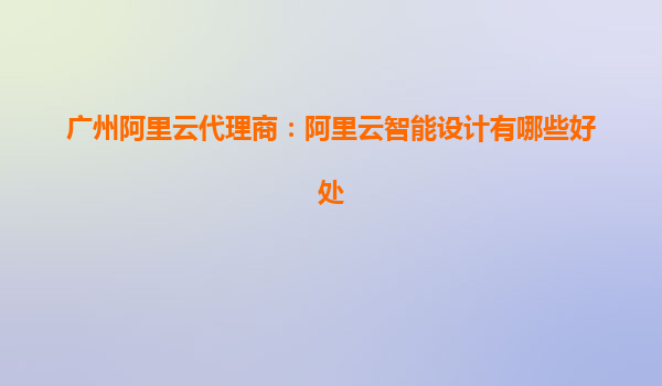 廣州阿里云代理商:阿里云智能設(shè)計(jì)有哪些好處?