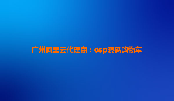廣州阿里云代理商:ASP源碼購物車系統(tǒng)的云服務(wù)優(yōu)勢(shì)解析