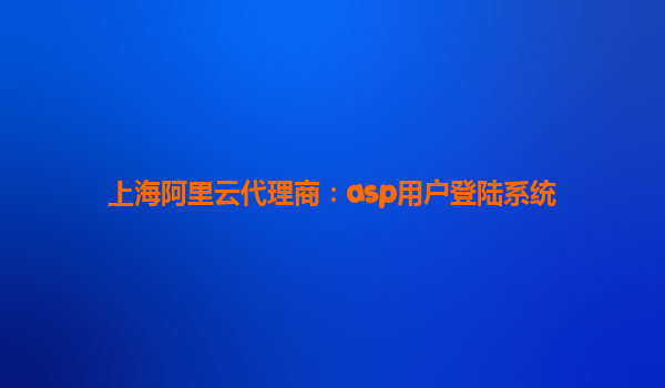 上海阿里云代理商:ASP用戶登錄系統(tǒng)的優(yōu)勢解析