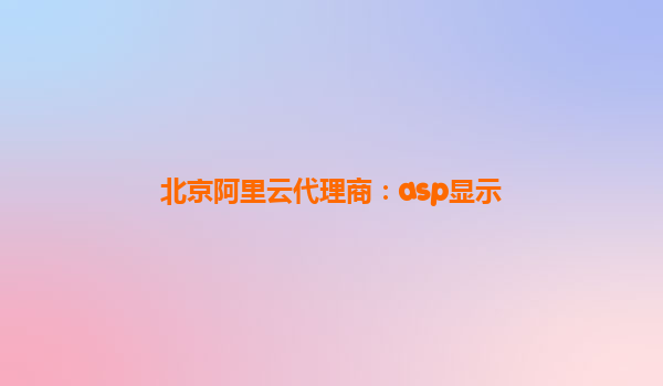北京阿里云代理商:ASP顯示 – 阿里云的核心優(yōu)勢與應(yīng)用價(jià)值
