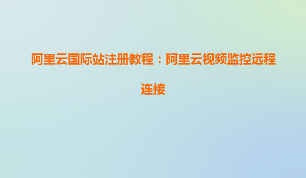 阿里云國際站注冊與視頻監(jiān)控遠(yuǎn)程連接全攻略
