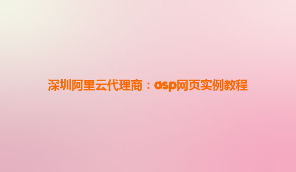 深圳阿里云代理商:ASP網(wǎng)頁(yè)實(shí)例教程
