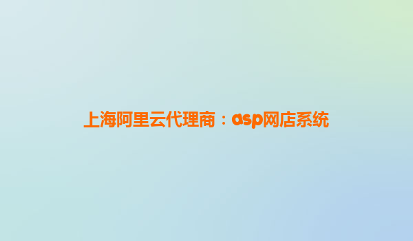 上海阿里云代理商:ASP網(wǎng)店系統(tǒng)與阿里云的最佳組合方案