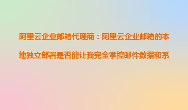 阿里云企業(yè)郵箱代理商:阿里云企業(yè)郵箱的本地獨(dú)立部署是否能讓我完全掌控郵件數(shù)據(jù)和系統(tǒng)運(yùn)維?