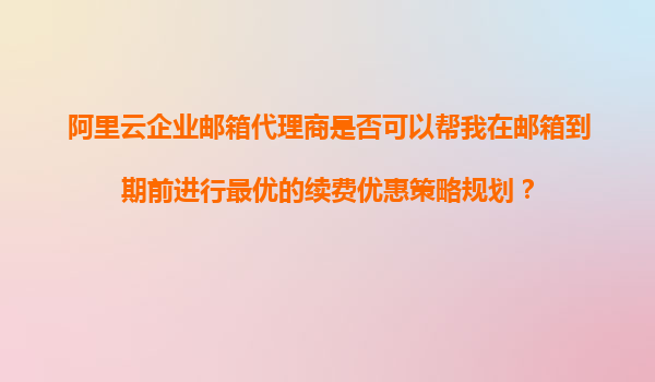 阿里云企業(yè)郵箱代理商能否幫我在郵箱到期前規(guī)劃最優(yōu)續(xù)費(fèi)優(yōu)惠策略?