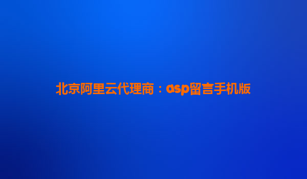 北京阿里云代理商:ASP留言手機(jī)版解決方案助力企業(yè)高效上云