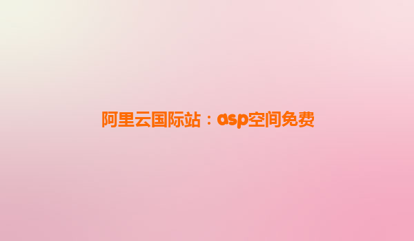阿里云國際站:ASP空間免費(fèi)體驗(yàn),助力企業(yè)輕松上云
