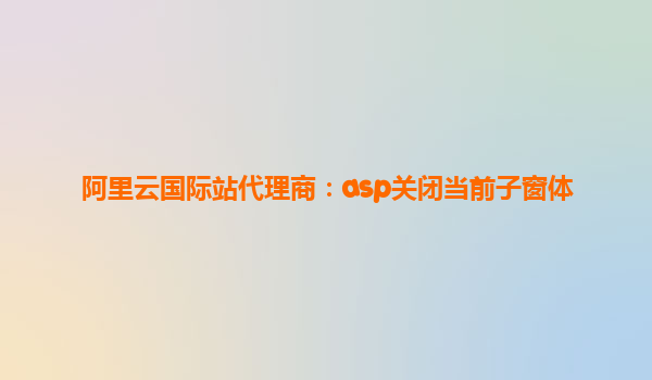 標(biāo)題“阿里云國際站代理商:ASP關(guān)閉當(dāng)前子窗體”可拆解為三個關(guān)鍵信息: