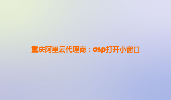 重慶阿里云代理商:ASP打開(kāi)小窗口助力企業(yè)高效上云