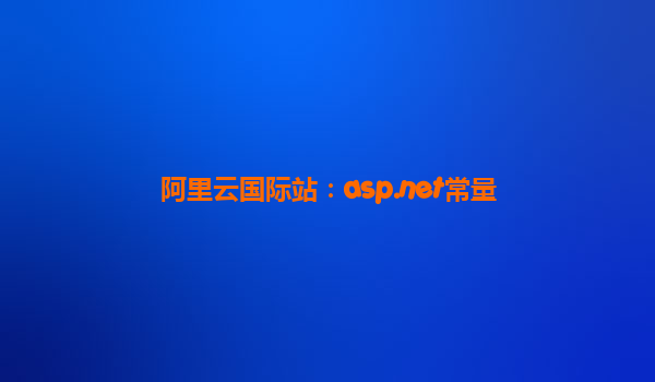 阿里云國際站:ASP.NET常量部署與優(yōu)化解決方案