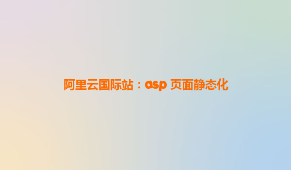 阿里云國際站:ASP頁面靜態(tài)化解決方案與優(yōu)勢解析