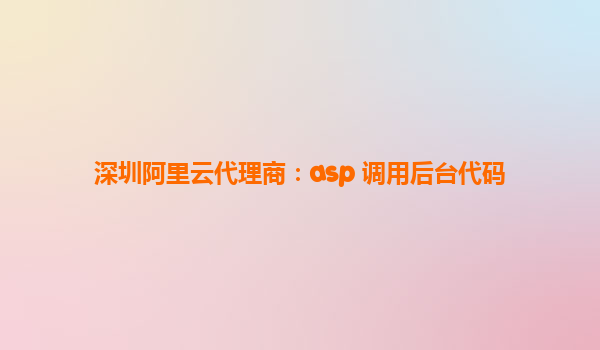 深圳阿里云代理商:ASP調(diào)用后臺代碼的技術(shù)實現(xiàn)與阿里云優(yōu)勢解析