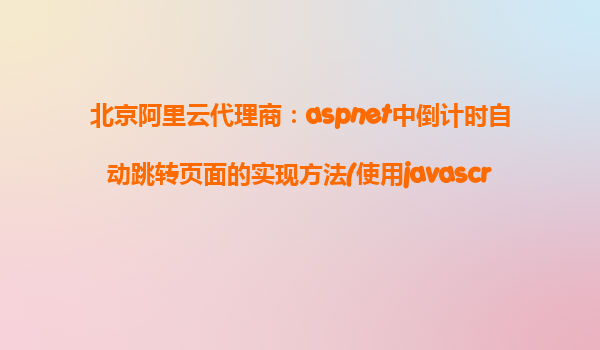 北京阿里云代理商:ASP.NET中倒計時自動跳轉頁面的實現(xiàn)方法(使用JavaScript) 在現(xiàn)代Web開發(fā)中,倒計時跳轉頁面的功能常常被用在用戶登錄、支付確認、廣告展示等場景。本文將介紹如何在ASP.NET環(huán)境中使用JavaScrip