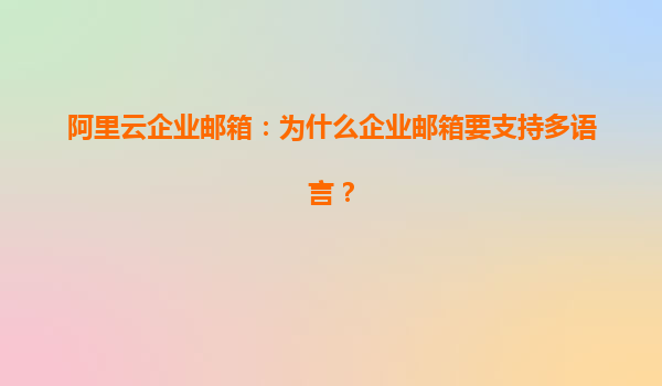 阿里云企業(yè)郵箱支持多語言的重要性 在全球化迅速發(fā)展的今天,企業(yè)的業(yè)務(wù)往往不再局限于一個國家或地區(qū),這就要求企業(yè)的通信工具能夠跨越語言的障礙,以適應(yīng)不同國家和地區(qū)的業(yè)務(wù)需求。阿里云企業(yè)郵箱支持多語言