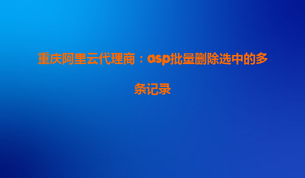 重慶阿里云代理商:ASP批量刪除選中的多條記錄 隨著云計(jì)算技術(shù)的發(fā)展,越來越多的企業(yè)選擇將業(yè)務(wù)遷移至云端,以提高效率、降低成本。而阿里云作為國內(nèi)領(lǐng)先的云計(jì)算服務(wù)提供商,不僅提供強(qiáng)大的技術(shù)支持,還通過