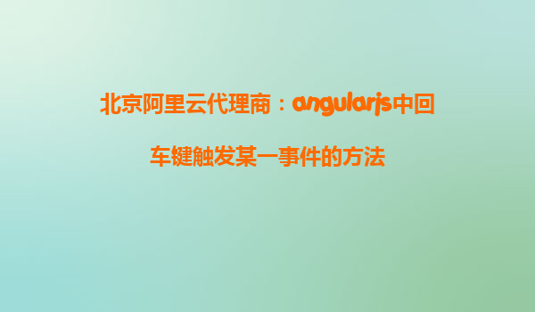 北京阿里云代理商:AngularJS中回車鍵觸發(fā)事件的高效實現(xiàn)與云服務優(yōu)勢 一、AngularJS回車鍵事件的核心實現(xiàn)方法 在AngularJS開發(fā)中,通過鍵盤事件提升交互體驗是常見需求。下面介紹三種高