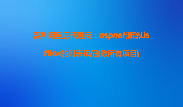 深圳阿里云代理商:ASP.NET清除ListBox的列表項(xiàng)(刪除所有項(xiàng)目) 在開發(fā)ASP.NET應(yīng)用程序時(shí),ListBox控件是一個(gè)非常常見的元素,它用于顯示多個(gè)選項(xiàng),并允許用戶選擇一個(gè)或多個(gè)項(xiàng)。今天,我們將詳細(xì)介紹如何在A