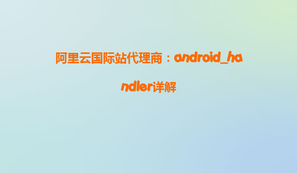 阿里云國(guó)際站代理商:Android_Handler詳解 一、阿里云國(guó)際站代理商的價(jià)值與優(yōu)勢(shì) 阿里云國(guó)際站代理商是阿里云全球化戰(zhàn)略的重要合作伙伴,致力于為企業(yè)客戶(hù)提供云