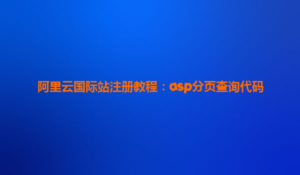 阿里云國際站注冊教程:ASP分頁查詢代碼實(shí)現(xiàn) 一、阿里云國際站注冊流程 1.訪問阿里云國際站官網(wǎng)(www.alibabacloud.com) 2.點(diǎn)擊右上角"SignUp"按鈕 3.填寫郵箱、密碼等信息完成基礎(chǔ)注冊 4