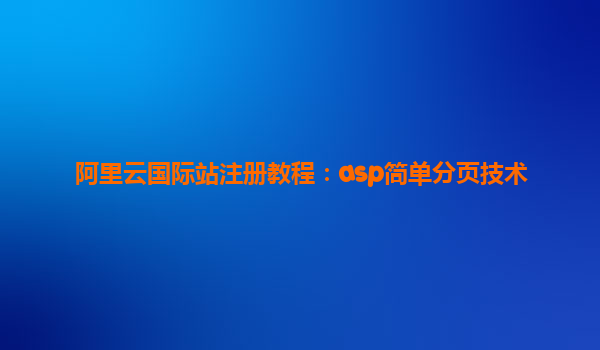 阿里云國際站注冊教程:ASP簡單分頁技術(shù) 一、阿里云國際站的優(yōu)勢 阿里云國際站作為全球領(lǐng)先的云計(jì)算服務(wù)提供商,為廣大開發(fā)者提供了穩(wěn)定、安全、高效的云服務(wù)。對于需要部署ASP網(wǎng)站的用戶來說,阿里云國際站
