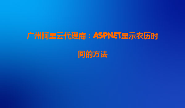廣州阿里云代理商:ASP.NET顯示農(nóng)歷時間的方法 隨著技術(shù)的發(fā)展,越來越多的網(wǎng)站和應(yīng)用程序開始支持農(nóng)歷時間顯示,特別是在中國及一些有農(nóng)歷文化的地區(qū),農(nóng)歷時間在生活和傳統(tǒng)節(jié)日中占據(jù)了重要地位。在使用ASP.NET開