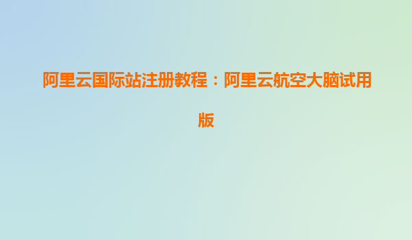 阿里云國際站注冊(cè)教程:阿里云航空大腦試用版 一、阿里云國際站注冊(cè)流程 阿里云作為全球領(lǐng)先的云計(jì)算服務(wù)提供商,其國際站為用戶提供了便捷的注冊(cè)通道和豐富的云服務(wù)資源。以下是注冊(cè)阿里云國際站并試用航空大