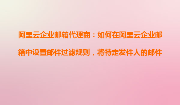 阿里云企業(yè)郵箱代理商:如何在阿里云企業(yè)郵箱中設置郵件過濾規(guī)則,將特定發(fā)件人的郵件存入垃圾箱? 高效管理郵件,讓通訊更安全便捷 一、阿里云企業(yè)郵箱的優(yōu)勢 在當今數字化時代,企業(yè)郵箱不