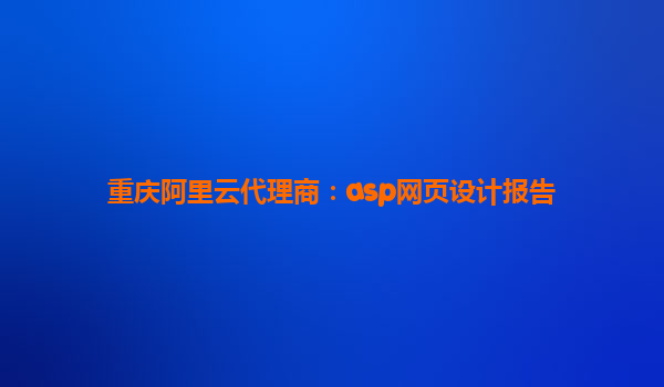 重慶阿里云代理商:ASP網頁設計報告 本文基于重慶地區(qū)阿里云代理商的視角,深入分析ASP技術架構在網頁設計中的應用與優(yōu)勢,結合阿里云強大的云計算服務能力,探討如何通過云端生態(tài)