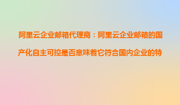 阿里云企業(yè)郵箱代理商:阿里云企業(yè)郵箱的國產(chǎn)化自主可控是否意味著它符合國內企業(yè)的特殊需求? 一、阿里云企業(yè)郵箱的國產(chǎn)化自主可控背景 近年來,隨著數(shù)據(jù)安全與信息安全的重要性日益凸