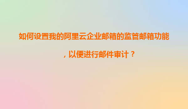 如何設(shè)置阿里云企業(yè)郵箱的監(jiān)管郵箱功能以實現(xiàn)郵件審計 一、郵件審計的重要性 在企業(yè)的日常運營中,郵件作為重要的溝通工具,承載著大量的業(yè)務(wù)信息和敏感數(shù)據(jù)。出于合規(guī)性要求或內(nèi)部管理需要,