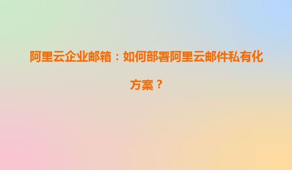 阿里云企業(yè)郵箱:如何部署阿里云郵件私有化方案? 一、阿里云郵件私有化方案概述 阿里云企業(yè)郵箱私有化部署方案是企業(yè)級(jí)郵件系統(tǒng)的定制化解決方案,通過將郵件系統(tǒng)部署在客戶自有數(shù)據(jù)中心或阿里云專有云環(huán)境,