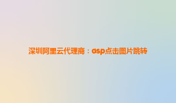 深圳阿里云代理商:ASP點(diǎn)擊圖片跳轉(zhuǎn)的高效解決方案 作為深圳地區(qū)專業(yè)的阿里云代理商,我們致力于為企業(yè)提供穩(wěn)定、高效且安全的云計(jì)算服務(wù)。其中,ASP(ActiveServerPages)結(jié)合阿里云的強(qiáng)大功能,能夠?qū)崿F(xiàn)點(diǎn)擊圖