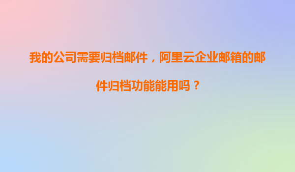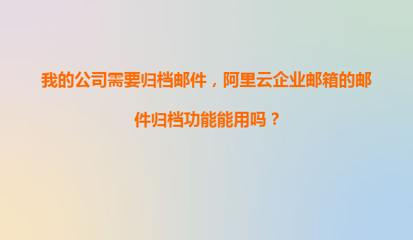 阿里云企業(yè)郵箱郵件歸檔功能解析 隨著企業(yè)信息化建設(shè)的推進(jìn),郵件作為日常辦公中不可或缺的溝通工具,其數(shù)據(jù)管理越來越受到重視。對于需要合規(guī)存檔的企業(yè)來說,阿里云企業(yè)郵箱提供的郵件歸檔功能無疑是理想的選擇。