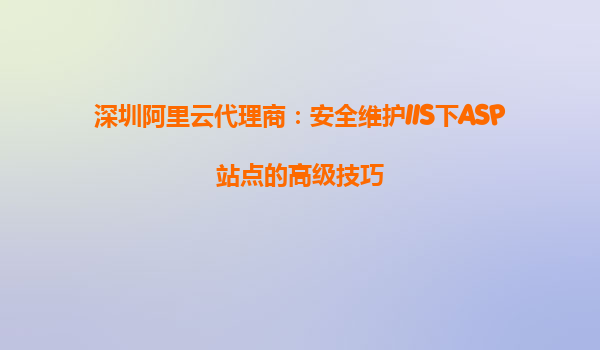 深圳阿里云代理商:安全維護IIS下ASP站點的高級技巧 在當今互聯(lián)網(wǎng)時代,網(wǎng)站安全問題越來越受到關注,尤其是使用IIS(InternetInformationServices)和ASP(ActiveServerPages)技術的站點。IIS作為微軟的Web服