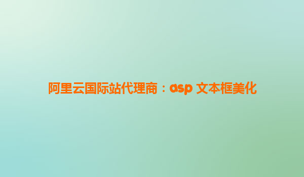 • 阿里云國(guó)際站代理商:ASP文本框美化解決方案與技術(shù)實(shí)踐 一、標(biāo)題解析與需求背景 "阿里云國(guó)際站代理商:ASP文本框美化"這一標(biāo)題包含三個(gè)核心要素: 1.阿里云國(guó)際站代理商:指向阿里云全球服務(wù)生態(tài)中的