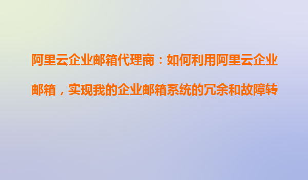 阿里云企業(yè)郵箱代理商:如何利用阿里云企業(yè)郵箱,實現(xiàn)我的企業(yè)郵箱系統(tǒng)的冗余和故障轉(zhuǎn)移? 1.阿里云企業(yè)郵箱的核心優(yōu)勢 阿里云企業(yè)郵箱作為國內(nèi)領先的企業(yè)級郵件服務,具備以下核心優(yōu)勢: 高可用