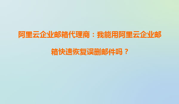 阿里云企業(yè)郵箱代理商:我能用阿里云企業(yè)郵箱快速恢復(fù)歷史郵件嗎? 一、阿里云企業(yè)郵箱的歷史郵件恢復(fù)功能 在日常辦公中,郵件作為企業(yè)溝通的重要工具,歷史郵件的保留和恢復(fù)尤為重要。無論是員工誤刪郵件、系