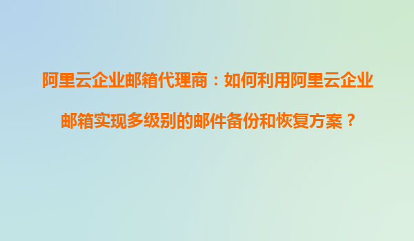 阿里云企業(yè)郵箱代理商的郵件備份與恢復(fù)解決方案 作為云計算領(lǐng)域的領(lǐng)航者,阿里云企業(yè)郵箱不僅提供了穩(wěn)定高效的郵件服務(wù),還通過強大的備份與恢復(fù)功能,為企業(yè)數(shù)據(jù)安全保駕護(hù)航。本文將詳細(xì)介紹如何通過阿里云企
