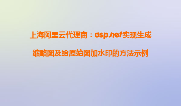以下是一篇關(guān)于如何使用ASP.NET在上海阿里云代理商的環(huán)境中生成縮略圖及給原始圖加水印的方法示例的文章。文章結(jié)合了阿里云及其代理商的優(yōu)勢(shì),內(nèi)容條理清晰,簡(jiǎn)單明了。 使用ASP.NET在上海阿里云代理商環(huán)境中