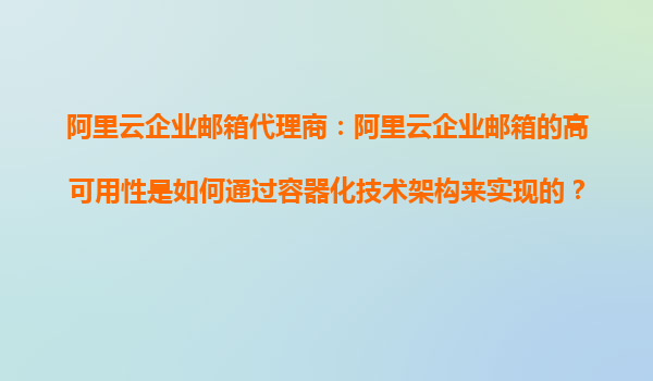 阿里云企業(yè)郵箱代理商:阿里云企業(yè)郵箱的云原生技術是如何通過容器化部署來確保系統的彈性擴展的? 引言 隨著企業(yè)數字化轉型的加速,高效穩(wěn)定的企業(yè)郵箱服務成為企業(yè)管理溝通的重要工具。阿里云企業(yè)郵箱作