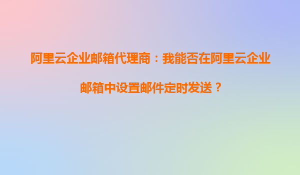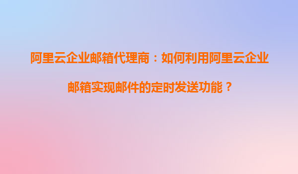 阿里云企業(yè)郵箱代理商:我能否在阿里云企業(yè)郵箱中設(shè)置郵件定時(shí)發(fā)送? 在當(dāng)今快節(jié)奏的商業(yè)環(huán)境中,高效、便捷的郵件溝通是企業(yè)運(yùn)營(yíng)的重要一環(huán)。阿里云企業(yè)郵箱作為一款專業(yè)的企業(yè)級(jí)郵箱服務(wù),不僅提供了穩(wěn)定