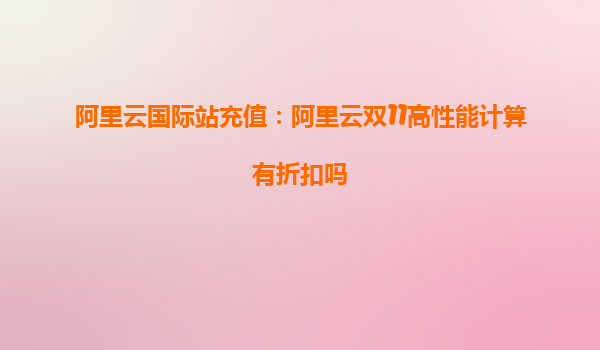 阿里云國際站充值:阿里云雙11高性能計算有折扣嗎? 阿里云作為全球領先的云計算服務提供商,每年雙11期間都會推出多種促銷活動,吸引全球用戶關注。其中,高性能計算(HPC)作為阿里云的核心產(chǎn)品之一,也