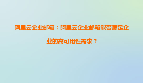 阿里云企業(yè)郵箱:哪些技術(shù)保障阿里云企業(yè)郵箱的高可用性? 引言 在數(shù)字化時(shí)代,企業(yè)郵箱不僅是溝通工具,更是企業(yè)形象和業(yè)務(wù)連續(xù)性的重要保障。阿里云企業(yè)郵箱憑借其強(qiáng)大的技術(shù)實(shí)力和豐富的實(shí)踐經(jīng)驗(yàn),成為