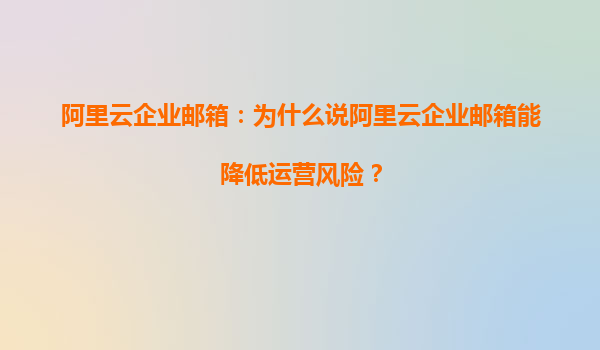 阿里云企業(yè)郵箱:為什么說阿里云企業(yè)郵箱能降低運(yùn)營(yíng)風(fēng)險(xiǎn)? 在數(shù)字化時(shí)代,企業(yè)郵箱不僅是溝通工具,更是企業(yè)信息安全的重要防線。阿里云企業(yè)郵箱憑借其強(qiáng)大的技術(shù)實(shí)力和豐富的功能,成為眾多企業(yè)降低運(yùn)營(yíng)風(fēng)
