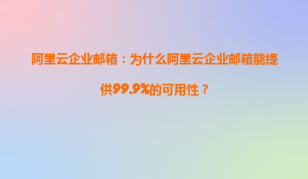 阿里云企業(yè)郵箱:為什么阿里云企業(yè)郵箱能提供99.9%的可用性? 在當(dāng)今數(shù)字化時(shí)代,企業(yè)郵箱已經(jīng)成為企業(yè)內(nèi)外溝通的重要工具。而阿里云企業(yè)郵箱憑借其99.9%的高可用性,贏得了越來越多企業(yè)的青睞。那么,阿里